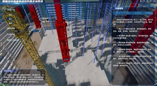 实境模拟,让“新设备”操作虚拟可练。学校基于数字孪生技术,校企协同开发“空中造楼机虚拟仿真实训平台”“智能建造实训箱”等资源。学生可在虚拟环境中反复练习造楼机液压系统操作、智能模板安装等“新设备”技能,在安全高效的模拟中锤炼应对复杂工况的“新”能力,弥补线下实操的限制。