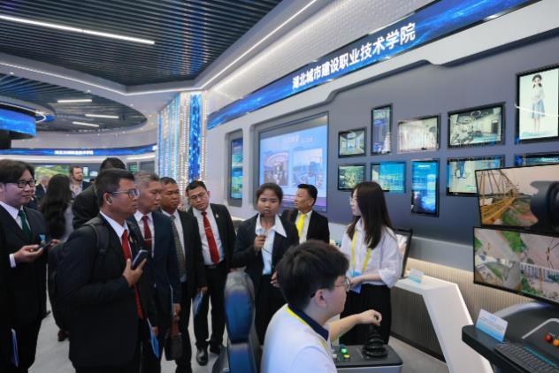 智能建造专业的杨苏旺同学在2025年世界数字教育大会上为国内外的观摩嘉宾演示5G塔吊远程操控技术,来自不同国家的外宾纷纷驻足,对“中国建造智慧”表示由衷的赞叹。